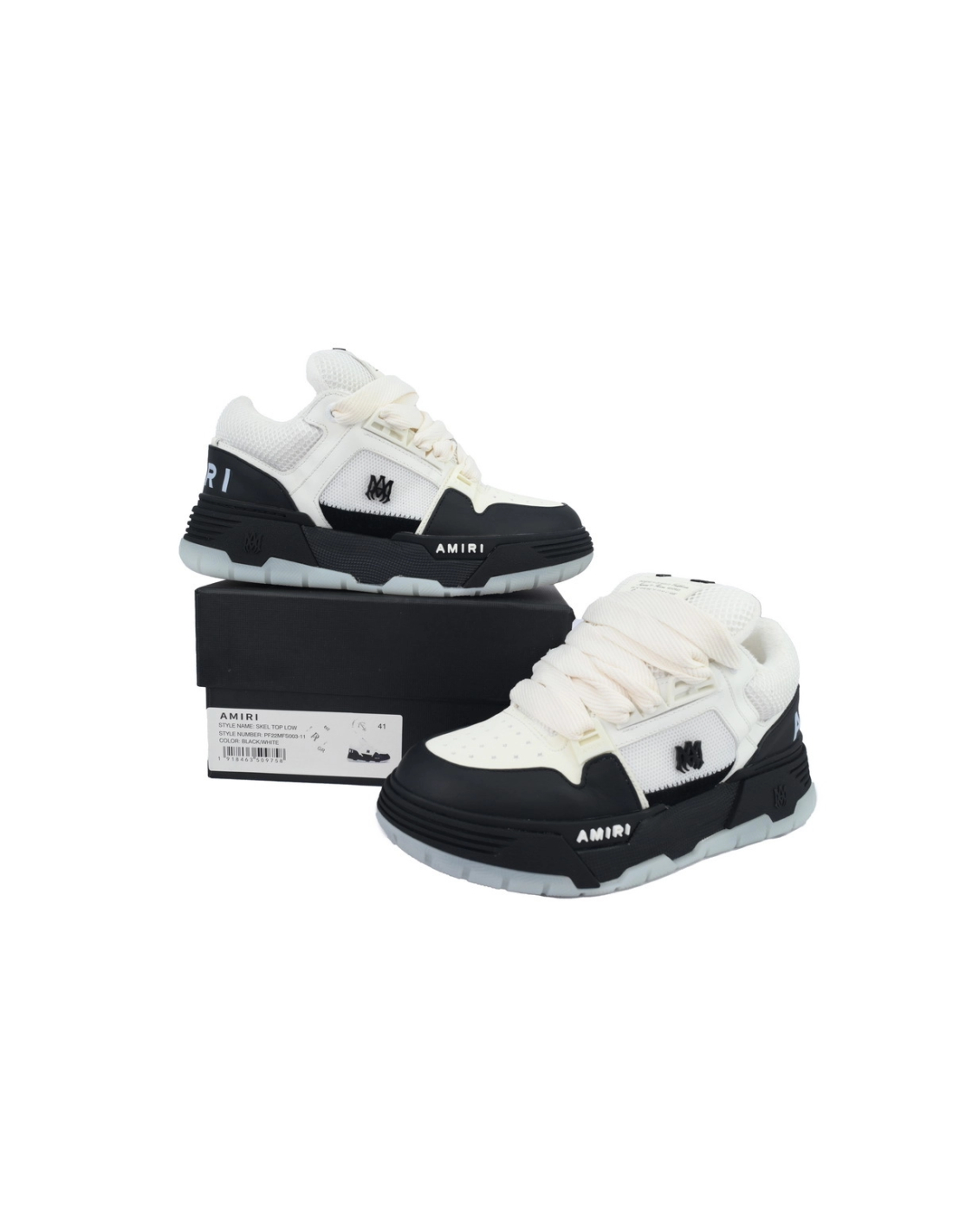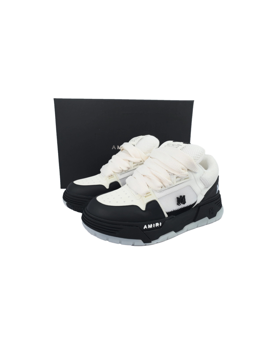 These striking sneakers showcase Amiri's iconic Panda design in a bold white and black color scheme, blending high-contrast aesthetics with luxury craftsmanship. The silhouette features premium material combinations and signature distressed detailing, creating a perfect fusion of urban edge and sophisticated elegance.
