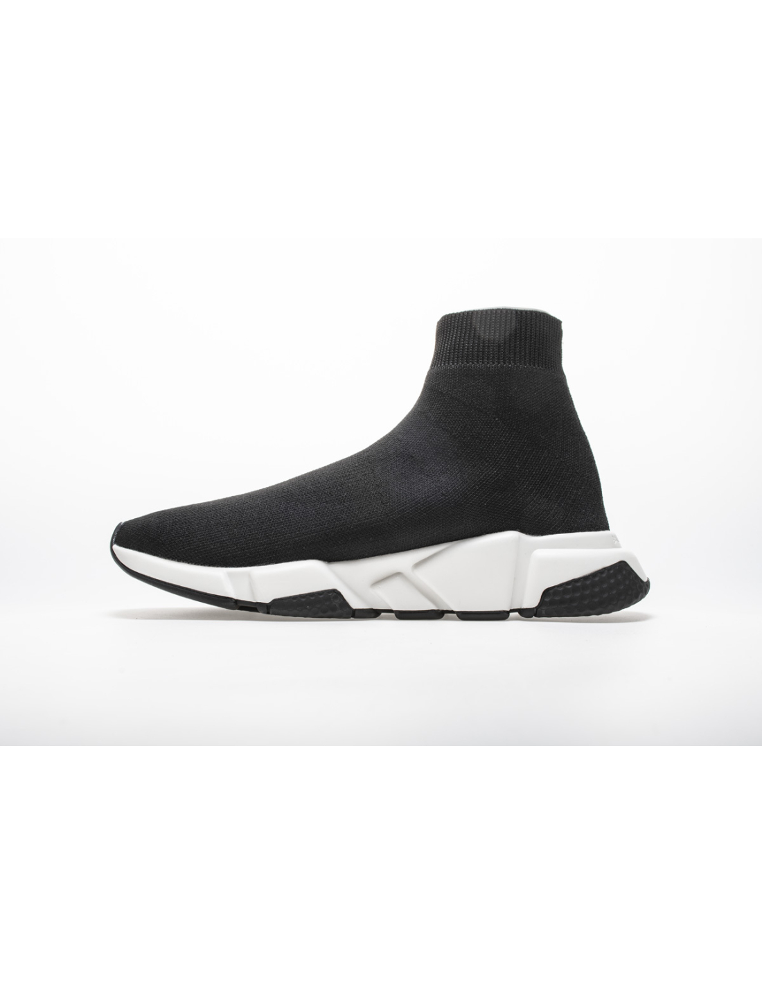 These avant-garde sneakers showcase Balenciaga's innovative Speed Sock design in a sleek black colorway with striking red logo accents, blending slip-on convenience with high-fashion aesthetics. The sock-like silhouette features an elastic knit construction and streamlined sole unit, creating a perfect fusion of athletic innovation and runway-ready style.