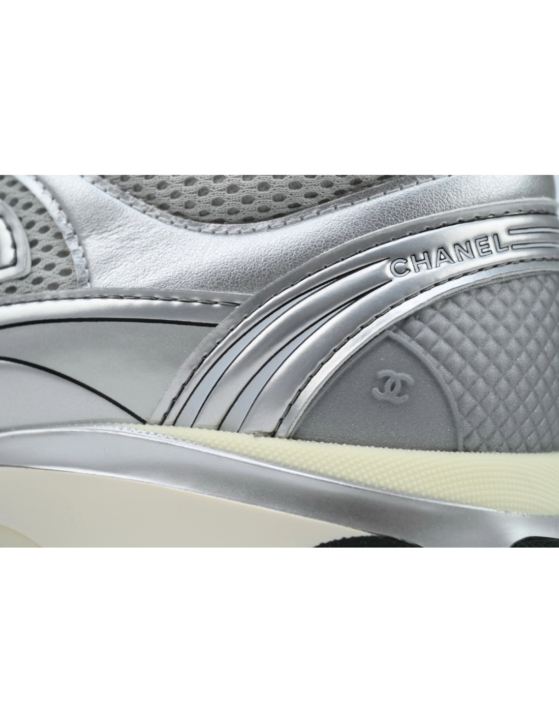 Please Choose Your Size CHANEL Chanel Fabric Laminated Low Top Sneakers Silver Black G39794 Y56368 K5451 $139.00 View