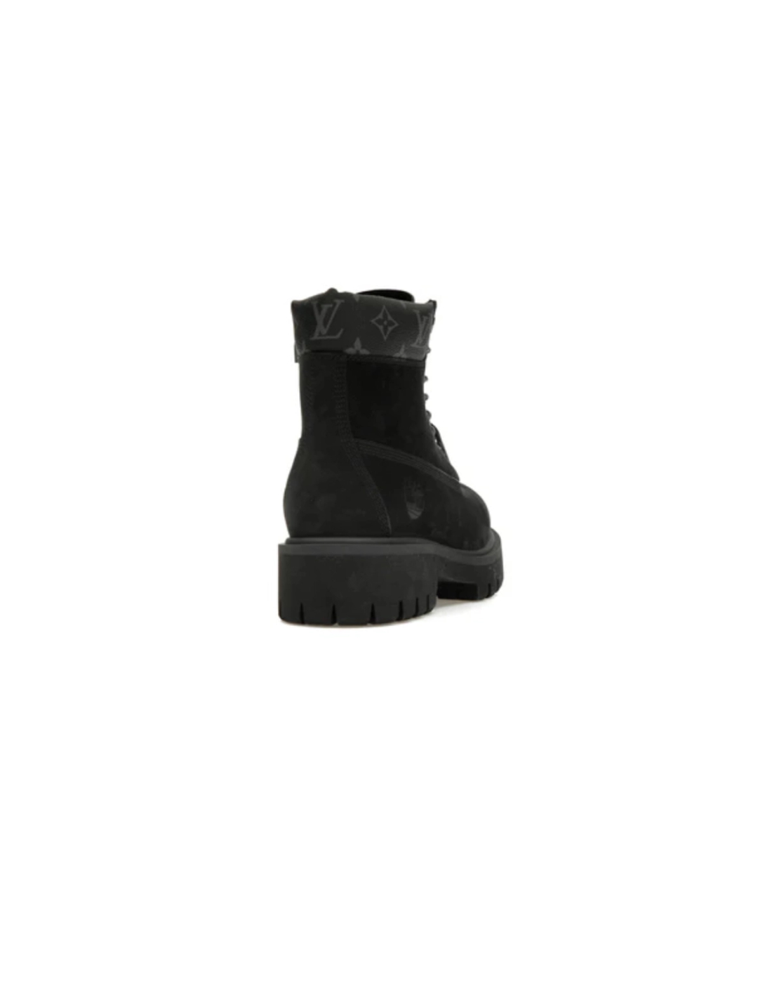 These premium ankle boots combine Louis Vuitton's luxury craftsmanship with Timberland's iconic rugged design in a sleek black colorway. The collaboration features signature LV monogram details and Timberland's sturdy construction, creating a perfect fusion of high-fashion elegance and outdoor functionality.