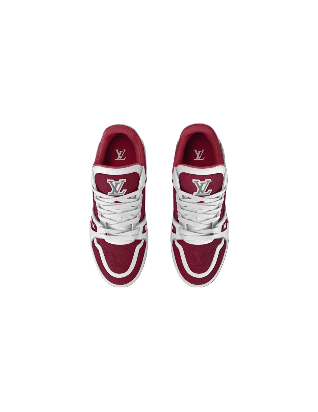 These vibrant sneakers showcase Louis Vuitton's iconic LV Trainer design in a bold sari red colorway, blending basketball inspiration with luxury craftsmanship. The silhouette features premium material combinations and signature LV detailing, creating a perfect fusion of athletic heritage and haute couture elegance.